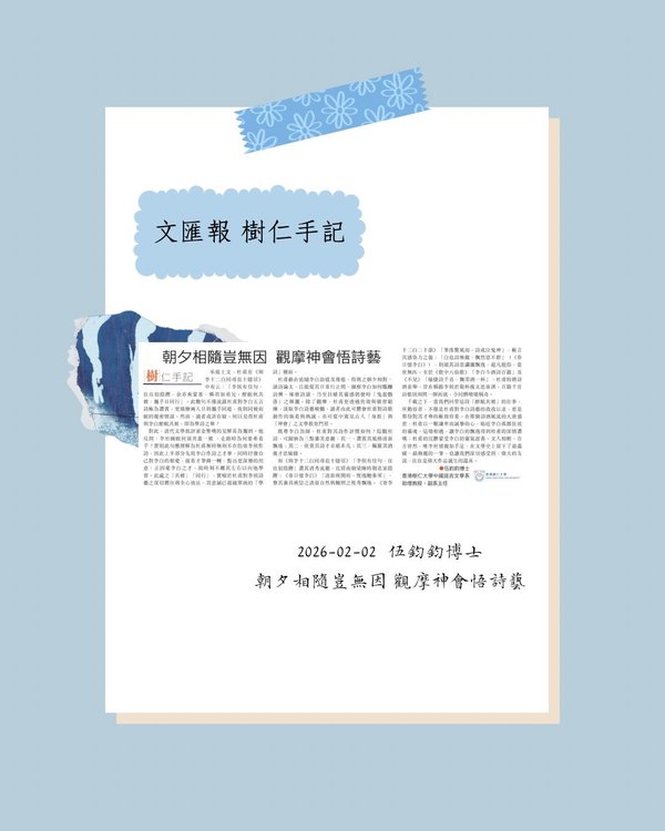 - 〈樹仁手記〉專欄更新:伍鈞鈞博士 李杜親如兄弟 為學詩醉眠共被